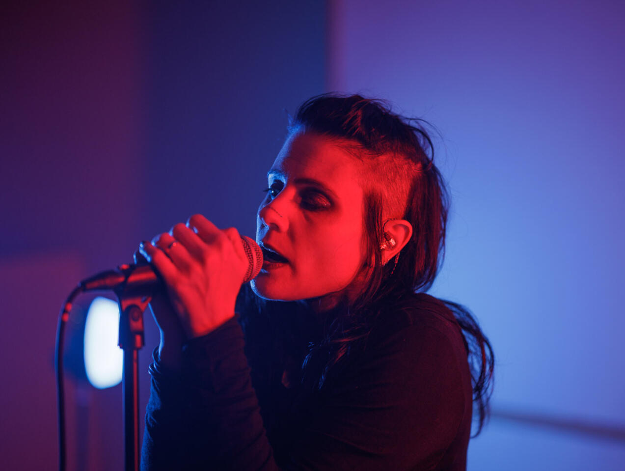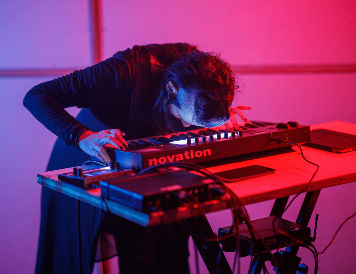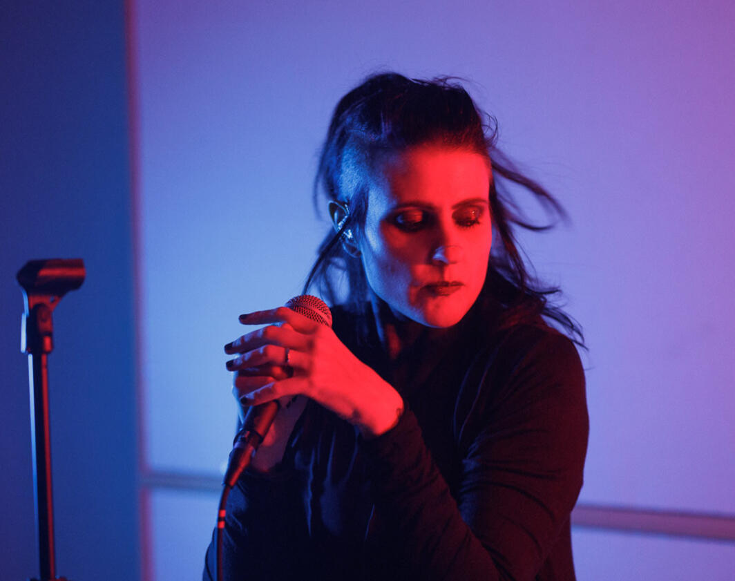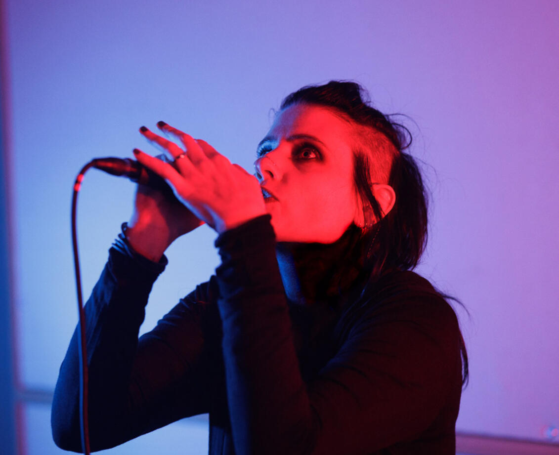 HER LIVE SETS COMBINE MINIMAL RHYTHMIC FRAMEWORKS, TACTILE NOISE ELEMENTS AND FRAGMENTED WHISPERED/SPOKEN VOCALS SHAPED BY HER ELECTROACOUSTIC BACKGROUND, DEFINING A MINIMAL, TEXTURE-FORWARD TAKE ON DARKWAVE.